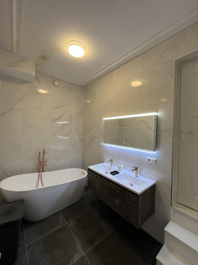 The apartment is fully furnished and equipped with a complete inventory such as (bed) linen, towels, kitchen utensils, crockery, washing machine, etc. The apartment can also be cleaned periodically (costs on request).
